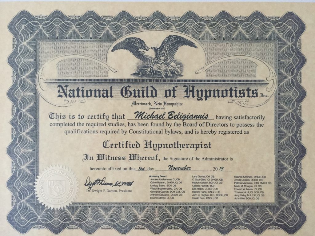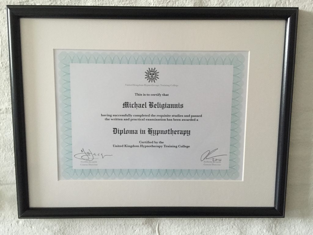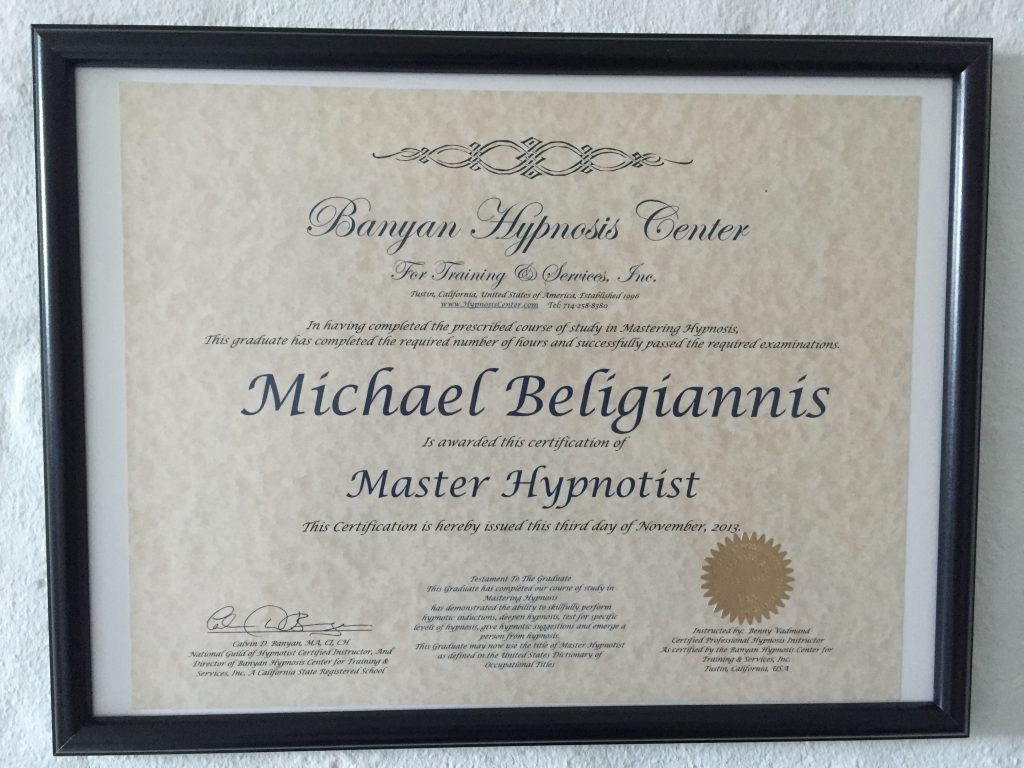 Mit navn er Michael Beligiannis, og jeg er eksternt eksamineret og certificeret hypnoseterapeut fra flere organisationer. Jeg har en lang hypnoseuddannelse bag mig og videreuddanner mig hvert år for at kunne være up-to-date på teknikker og forskning, så jeg kan levere det bedste til mine klienter.